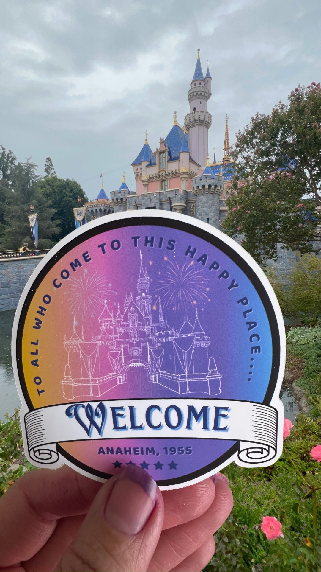 ✨ “To All Who Come to This Happy Place…” Disneyland Anniversary Sticker – Multiple Color Options ✨